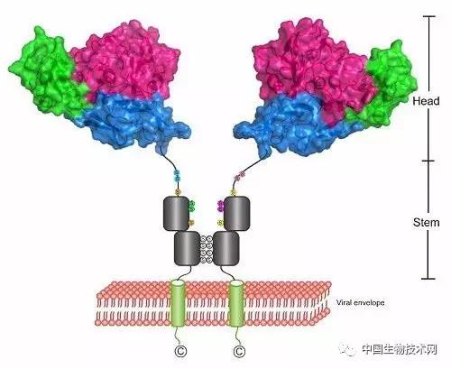 图1. 白蛉属布尼亚病毒囊膜蛋白Gn在病毒表面锚定方式模式图