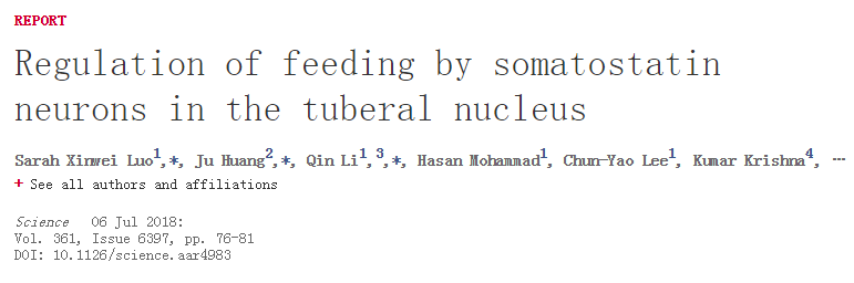 原文出处:Luo SX, Huang J, Li Q, et al. Regulation of feeding by somatostatin neurons in the tuberal nucleus[J]. Science. 2018 Jul 6;361(6397):76-81. doi: 10.1126/science.aar4983.