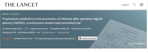原文出处:Marian Knight, Virginia Chiocchia, Christopher Partlett, et al. Prophylactic antibiotics in the prevention of infection after operative vaginal delivery (ANODE): a multicentre randomised controlled trial[J].Lancet. May 13, 2019.
