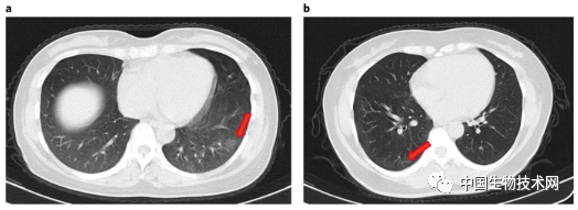 两名女性患者(45岁和50岁)的CT扫描。图片来源:自然医学