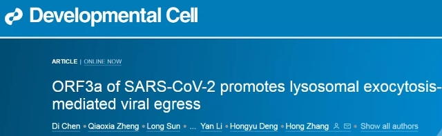 Dev Cell | 张宏团队发现新冠病毒蛋白ORF3a促进溶酶体外泌介导的病毒释放