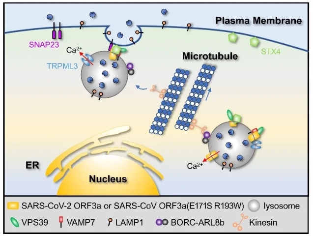 图5. 新冠病毒ORF3a促进溶酶体外泌的模式图