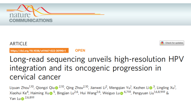 原文出处:Zhou L, Qiu Q, Zhou Q, Li J, Yu M, Li K, Xu L, Ke X, Xu H, Lu B, Wang H, Lu W, Liu P, Lu Y. Long-read sequencing unveils high-resolution HPV integration and its oncogenic progression in cervical cancer. Nat Commun. 2022 May 10;13(1):2563. doi: 10.1038/s41467-022-30190-1. PMID: 35538075; PMCID: PMC9091225.