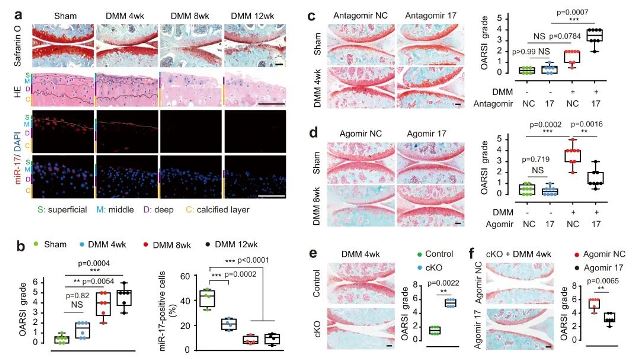 图1、miR-17缺失导致骨关节炎进展加快