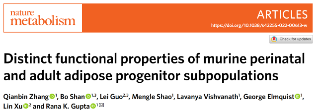 2022年8月18日,Rana Gupta课题组在Nature Metabolism上发表的题为:Distinct functional properties of murine perinatal and adult adipose progenitor subpopulations的研究论文,解构了老鼠腹脂形成伊始的细胞组成,又通过转基因老鼠举例阐述了发育过程中短期干预PDGFRβ+细胞对成年老鼠的长期影响。