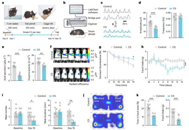 CS诱导的雄性小鼠胃功能障碍(图源自Nature Metabolism )