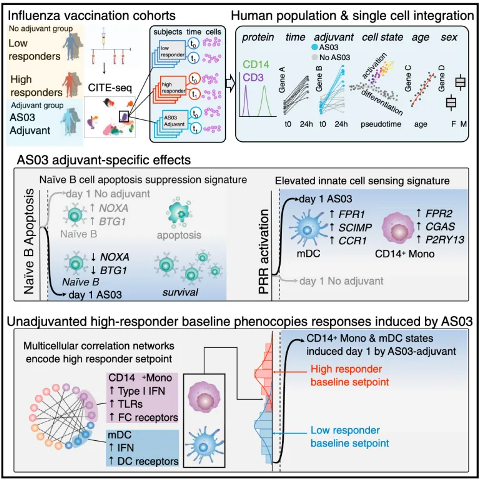 Immunity | 疫苗佐剂响应新发现:通过整合群体和单细胞数据的多维度平台,确定人类佐剂响应基线设定值