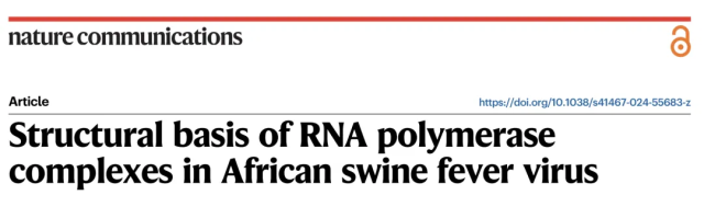 原文出处:Zhu G, Xi F, Zeng W, Zhao Y, Cao W, Liu C, Yang F, Ru Y, Xiao S, Zhang S, Liu H, Tian H, Yang F, Lu B, Sun S, Song H, Sun B, Zhao X, Tang L, Li K, He J, Guo J, Zhu Y, Zhu Z, Sun F, Zheng H. Structural basis of RNA polymerase complexes in African swine fever virus. Nat Commun. 2025 Jan 8;16(1):501. doi: 10.1038/s41467-024-55683-z. PMID: 39779680; PMCID: PMC11711665.