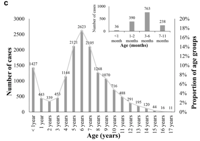 学龄儿童和青少年病例则在内蒙古和上海比例较高。整体流行病学特征提示本轮百日咳疫情主要集中于学龄期儿童,且区域间在年龄分布和季节性流行方面存在显著差异。