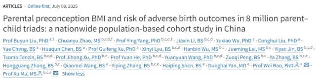[1] Buyun Liu, et al., (2025). Parental preconception BMI and risk of adverse birth outcomes in 8 million parent–child triads: a nationwide population-based cohort study in China. The Lancet Diabetes & Endocrinology, DOI: 10.1016/S2213-8587(25)00127-5
