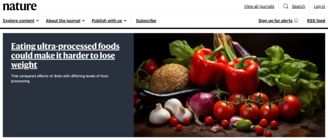 2025 年 8 月 5日,国际顶尖学术期刊 Nature 在其官网头条报道了一项最新研究成果——食用超加工食品可能会让减肥更加困难。报道称,即便饮食符合国家健康饮食指南,食用超加工食品仍可能妨碍减肥努力,而食用最低程度加工食物(例如使用新鲜食材在家烹饪的食物)可能会让减肥变得更容易。