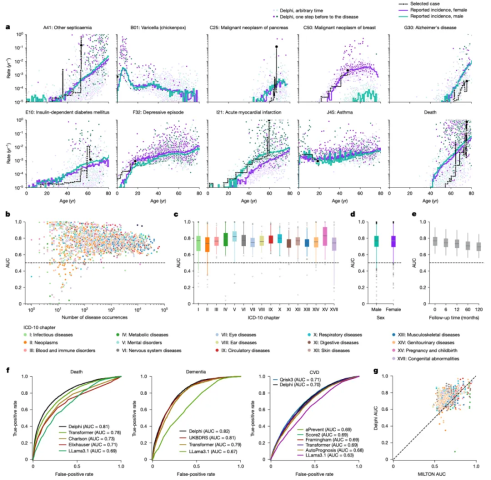 一款名为 Delphi-2M 的 AI 大模型能够通过分析一个人的医疗记录和生活方式,为超过 1000 种疾病提供风险评估,甚至能够提前数十年做出精准预测。