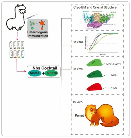原文出处:Wu X, Zhu L, Liang S, Chang Z, Wang Y, Zou Q, Xu Z, Zhang D, Hu J, Geng S, Li Z, Yu W, Hu Z, Chen M, Cao K, Jia B, Wei H, Cai R, Long J, Yang X, Yang Q, Yu Z, Shi L, Xu B, Zheng Y, Meng S, Cai J, Zhou G, Zhu K, Dou Y, Lou Z, Li M, Wu Y, Wu Z. A rationally designed cocktail of nanobodies elicited by heterologous vaccination confers protection against SFTSV in preclinical models. Sci Transl Med. 2025 Nov 19;17(825):eady9025. doi: 10.1126/scitranslmed.ady9025. Epub 2025 Nov 19. PMID: 41259535.