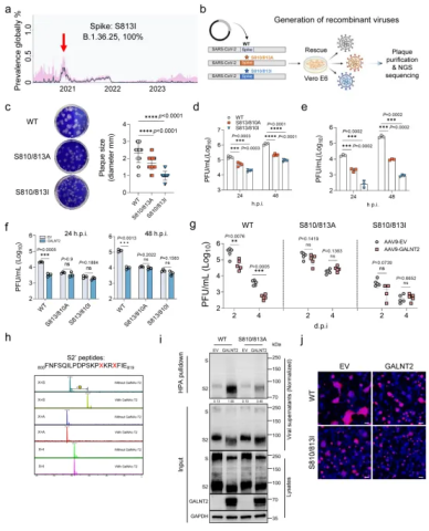 图4. S810/813是介导GALNT2抑制SARS-CoV-2感染的主要靶点